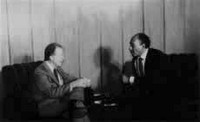 مباحثات اسماعيل فهمى وزير الخارجية مع الرئيس الامريكى كارتر حول قضية الشرق الاوسط وطلب تأييد الولايات المتحدة لمشروع ألقرار المصرى العربى حول قضية المستوطنات الاسرائيلية.